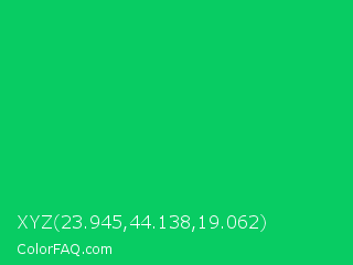 XYZ 23.945,44.138,19.062 Color is a normal green color and the nearest color is Malachite #0bda51. Hex code #08cc63 and RGB value is rgb(8,204,99). In RGB color space, this color is composed of 3% red, 80% green, 39% blue, In CMYK color space, this color is composed of 96% cyan, 0% magenta, 51% yellow , 20% black , In HSL color space, this color has a hue angle of 148° , 92% saturation and 42% lightness.