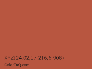 XYZ 24.02,17.216,6.908 Color is a normal red color and the nearest color is Crail #b95140. Hex code #b85640 and RGB value is rgb(184,86,64). In RGB color space, this color is composed of 72% red, 34% green, 25% blue, In CMYK color space, this color is composed of 0% cyan, 53% magenta, 65% yellow , 28% black , In HSL color space, this color has a hue angle of 11° , 48% saturation and 49% lightness.
