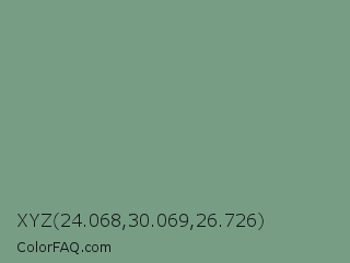 XYZ 24.068,30.069,26.726 Color is a normal green color and the nearest color is Oxley #779e86. Hex code #779e85 and RGB value is rgb(119,158,133). In RGB color space, this color is composed of 47% red, 62% green, 52% blue, In CMYK color space, this color is composed of 25% cyan, 0% magenta, 16% yellow , 38% black , In HSL color space, this color has a hue angle of 142° , 17% saturation and 54% lightness.