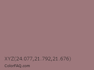 XYZ 24.077,21.792,21.676 Color is a normal red color and the nearest color is Bazaar #98777b. Hex code #9d777b and RGB value is rgb(157,119,123). In RGB color space, this color is composed of 62% red, 47% green, 48% blue, In CMYK color space, this color is composed of 0% cyan, 24% magenta, 22% yellow , 38% black , In HSL color space, this color has a hue angle of 354° , 16% saturation and 54% lightness.