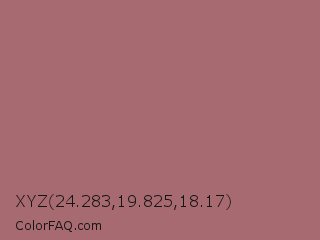 XYZ 24.283,19.825,18.17 Color is a normal red color and the nearest color is Coral Tree #a86b6b. Hex code #a86a71 and RGB value is rgb(168,106,113). In RGB color space, this color is composed of 66% red, 42% green, 44% blue, In CMYK color space, this color is composed of 0% cyan, 37% magenta, 33% yellow , 34% black , In HSL color space, this color has a hue angle of 353° , 26% saturation and 54% lightness.