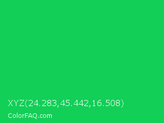 XYZ 24.283,45.442,16.508 Color is a normal green color and the nearest color is Malachite #0bda51. Hex code #12cf57 and RGB value is rgb(18,207,87). In RGB color space, this color is composed of 7% red, 81% green, 34% blue, In CMYK color space, this color is composed of 91% cyan, 0% magenta, 58% yellow , 19% black , In HSL color space, this color has a hue angle of 142° , 84% saturation and 44% lightness.