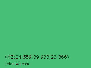 XYZ 24.559,39.933,23.866 Color is a normal green color and the nearest color is Emerald #50c878. Hex code #47bf77 and RGB value is rgb(71,191,119). In RGB color space, this color is composed of 28% red, 75% green, 47% blue, In CMYK color space, this color is composed of 63% cyan, 0% magenta, 38% yellow , 25% black , In HSL color space, this color has a hue angle of 144° , 48% saturation and 51% lightness.