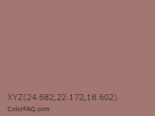XYZ 24.682,22.172,18.602 Color is a normal red color and the nearest color is Burnished Brown #a17a74. Hex code #a37771 and RGB value is rgb(163,119,113). In RGB color space, this color is composed of 64% red, 47% green, 44% blue, In CMYK color space, this color is composed of 0% cyan, 27% magenta, 31% yellow , 36% black , In HSL color space, this color has a hue angle of 7° , 21% saturation and 54% lightness.