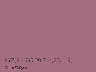 XYZ 24.685,20.714,23.119 Color is a normal rose color and the nearest color is Bazaar #98777b. Hex code #a36f80 and RGB value is rgb(163,111,128). In RGB color space, this color is composed of 64% red, 44% green, 50% blue, In CMYK color space, this color is composed of 0% cyan, 32% magenta, 21% yellow , 36% black , In HSL color space, this color has a hue angle of 340° , 22% saturation and 54% lightness.