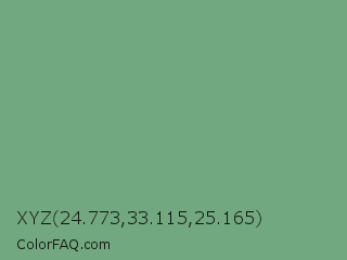 XYZ 24.773,33.115,25.165 Color is a normal green color and the nearest color is Amulet #7b9f80. Hex code #72a87f and RGB value is rgb(114,168,127). In RGB color space, this color is composed of 45% red, 66% green, 50% blue, In CMYK color space, this color is composed of 32% cyan, 0% magenta, 24% yellow , 34% black , In HSL color space, this color has a hue angle of 134° , 24% saturation and 55% lightness.