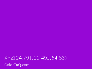 XYZ 24.791,11.491,64.53 Color is a normal purple color and the nearest color is Dark Violet #9400d3. Hex code #9607d6 and RGB value is rgb(150,7,214). In RGB color space, this color is composed of 59% red, 3% green, 84% blue, In CMYK color space, this color is composed of 30% cyan, 97% magenta, 0% yellow , 16% black , In HSL color space, this color has a hue angle of 281° , 94% saturation and 43% lightness.