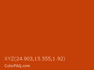 XYZ 24.903,15.555,1.92 Color is a normal orange color and the nearest color is Sinopia #cb410b. Hex code #c54008 and RGB value is rgb(197,64,8). In RGB color space, this color is composed of 77% red, 25% green, 3% blue, In CMYK color space, this color is composed of 0% cyan, 68% magenta, 96% yellow , 23% black , In HSL color space, this color has a hue angle of 18° , 92% saturation and 40% lightness.