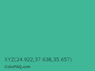 XYZ 24.922,37.638,35.657 Color is a normal cyan color and the nearest color is Keppel #3ab09e. Hex code #40b898 and RGB value is rgb(64,184,152). In RGB color space, this color is composed of 25% red, 72% green, 60% blue, In CMYK color space, this color is composed of 65% cyan, 0% magenta, 17% yellow , 28% black , In HSL color space, this color has a hue angle of 164° , 48% saturation and 49% lightness.