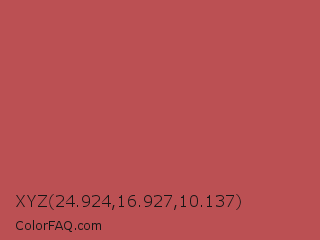 XYZ 24.924,16.927,10.137 Color is a normal red color and the nearest color is Bittersweet Shimmer #bf4f51. Hex code #bb5053 and RGB value is rgb(187,80,83). In RGB color space, this color is composed of 73% red, 31% green, 33% blue, In CMYK color space, this color is composed of 0% cyan, 57% magenta, 56% yellow , 27% black , In HSL color space, this color has a hue angle of 358° , 44% saturation and 52% lightness.