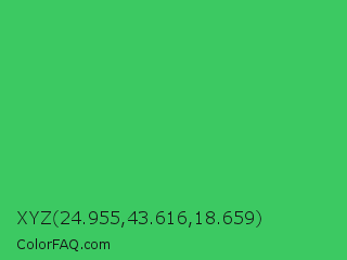 XYZ 24.955,43.616,18.659 Color is a normal green color and the nearest color is UFO Green #3cd070. Hex code #3cc962 and RGB value is rgb(60,201,98). In RGB color space, this color is composed of 24% red, 79% green, 38% blue, In CMYK color space, this color is composed of 70% cyan, 0% magenta, 51% yellow , 21% black , In HSL color space, this color has a hue angle of 136° , 57% saturation and 51% lightness.