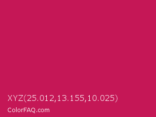 XYZ 25.012,13.155,10.025 Color is a normal rose color and the nearest color is Rose Red #c21e56. Hex code #c51756 and RGB value is rgb(197,23,86). In RGB color space, this color is composed of 77% red, 9% green, 34% blue, In CMYK color space, this color is composed of 0% cyan, 88% magenta, 56% yellow , 23% black , In HSL color space, this color has a hue angle of 338° , 79% saturation and 43% lightness.