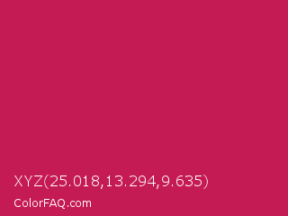 XYZ 25.018,13.294,9.635 Color is a normal rose color and the nearest color is Rose Red #c21e56. Hex code #c51b54 and RGB value is rgb(197,27,84). In RGB color space, this color is composed of 77% red, 11% green, 33% blue, In CMYK color space, this color is composed of 0% cyan, 86% magenta, 57% yellow , 23% black , In HSL color space, this color has a hue angle of 340° , 76% saturation and 44% lightness.