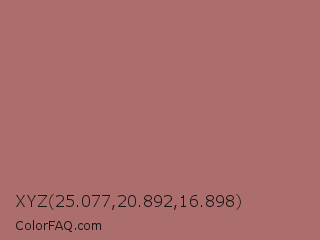 XYZ 25.077,20.892,16.898 Color is a normal red color and the nearest color is Copper Penny #ad6f69. Hex code #ab6e6c and RGB value is rgb(171,110,108). In RGB color space, this color is composed of 67% red, 43% green, 42% blue, In CMYK color space, this color is composed of 0% cyan, 36% magenta, 37% yellow , 33% black , In HSL color space, this color has a hue angle of 2° , 27% saturation and 55% lightness.
