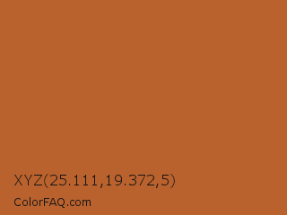 XYZ 25.111,19.372,5 Color is a normal orange color and the nearest color is Tuscany #bd5e2e. Hex code #ba622e and RGB value is rgb(186,98,46). In RGB color space, this color is composed of 73% red, 38% green, 18% blue, In CMYK color space, this color is composed of 0% cyan, 47% magenta, 75% yellow , 27% black , In HSL color space, this color has a hue angle of 22° , 60% saturation and 45% lightness.
