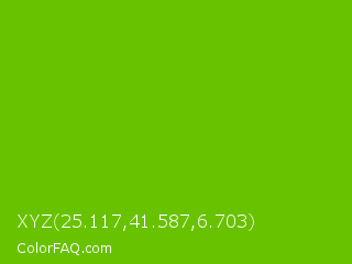 XYZ 25.117,41.587,6.703 Color is a normal green color and the nearest color is Lima #76bd17. Hex code #69c200 and RGB value is rgb(105,194,0). In RGB color space, this color is composed of 41% red, 76% green, 0% blue, In CMYK color space, this color is composed of 46% cyan, 0% magenta, 100% yellow , 24% black , In HSL color space, this color has a hue angle of 88° , 100% saturation and 38% lightness.