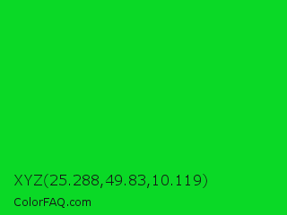 XYZ 25.288,49.83,10.119 Color is a normal green color and the nearest color is Vivid Malachite #00cc33. Hex code #0ad926 and RGB value is rgb(10,217,38). In RGB color space, this color is composed of 4% red, 85% green, 15% blue, In CMYK color space, this color is composed of 95% cyan, 0% magenta, 82% yellow , 15% black , In HSL color space, this color has a hue angle of 128° , 91% saturation and 45% lightness.
