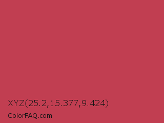 XYZ 25.2,15.377,9.424 Color is a normal red color and the nearest color is Brick Red #cb4154. Hex code #c13e51 and RGB value is rgb(193,62,81). In RGB color space, this color is composed of 76% red, 24% green, 32% blue, In CMYK color space, this color is composed of 0% cyan, 68% magenta, 58% yellow , 24% black , In HSL color space, this color has a hue angle of 351° , 51% saturation and 50% lightness.