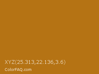XYZ 25.313,22.136,3.6 Color is a normal orange color and the nearest color is Mandalay #ad781b. Hex code #b57314 and RGB value is rgb(181,115,20). In RGB color space, this color is composed of 71% red, 45% green, 8% blue, In CMYK color space, this color is composed of 0% cyan, 36% magenta, 89% yellow , 29% black , In HSL color space, this color has a hue angle of 35° , 80% saturation and 39% lightness.