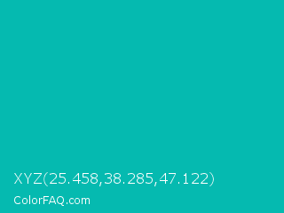 XYZ 25.458,38.285,47.122 Color is a normal cyan color and the nearest color is Tiffany Blue #0abab5. Hex code #05bab0 and RGB value is rgb(5,186,176). In RGB color space, this color is composed of 2% red, 73% green, 69% blue, In CMYK color space, this color is composed of 97% cyan, 0% magenta, 5% yellow , 27% black , In HSL color space, this color has a hue angle of 177° , 95% saturation and 37% lightness.