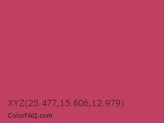 XYZ 25.477,15.606,12.979 Color is a normal rose color and the nearest color is Deep Blush #b44668. Hex code #bf4061 and RGB value is rgb(191,64,97). In RGB color space, this color is composed of 75% red, 25% green, 38% blue, In CMYK color space, this color is composed of 0% cyan, 66% magenta, 49% yellow , 25% black , In HSL color space, this color has a hue angle of 344° , 50% saturation and 50% lightness.