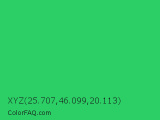 XYZ 25.707,46.099,20.113 Color is a normal green color and the nearest color is UFO Green #3cd070. Hex code #2bcf66 and RGB value is rgb(43,207,102). In RGB color space, this color is composed of 17% red, 81% green, 40% blue, In CMYK color space, this color is composed of 79% cyan, 0% magenta, 51% yellow , 19% black , In HSL color space, this color has a hue angle of 142° , 66% saturation and 49% lightness.