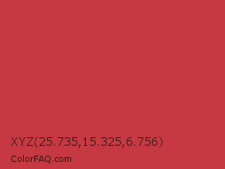 XYZ 25.735,15.325,6.756 Color is a normal red color and the nearest color is Brick Red #c62d42. Hex code #c63942 and RGB value is rgb(198,57,66). In RGB color space, this color is composed of 78% red, 22% green, 26% blue, In CMYK color space, this color is composed of 0% cyan, 71% magenta, 67% yellow , 22% black , In HSL color space, this color has a hue angle of 356° , 55% saturation and 50% lightness.