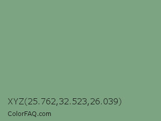 XYZ 25.762,32.523,26.039 Color is a normal green color and the nearest color is Amulet #7b9f80. Hex code #7da482 and RGB value is rgb(125,164,130). In RGB color space, this color is composed of 49% red, 64% green, 51% blue, In CMYK color space, this color is composed of 24% cyan, 0% magenta, 21% yellow , 36% black , In HSL color space, this color has a hue angle of 128° , 18% saturation and 57% lightness.