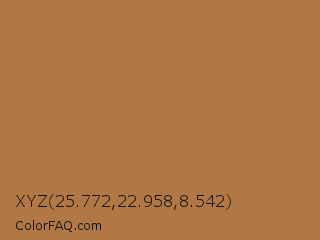 XYZ 25.772,22.958,8.542 Color is a normal orange color and the nearest color is Brown Sugar #af6e4d. Hex code #b17744 and RGB value is rgb(177,119,68). In RGB color space, this color is composed of 69% red, 47% green, 27% blue, In CMYK color space, this color is composed of 0% cyan, 33% magenta, 62% yellow , 31% black , In HSL color space, this color has a hue angle of 28° , 44% saturation and 48% lightness.