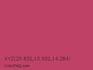 XYZ 25.832,15.932,14.284 Color is a normal rose color and the nearest color is Deep Blush #b44668. Hex code #bf4266 and RGB value is rgb(191,66,102). In RGB color space, this color is composed of 75% red, 26% green, 40% blue, In CMYK color space, this color is composed of 0% cyan, 65% magenta, 47% yellow , 25% black , In HSL color space, this color has a hue angle of 343° , 49% saturation and 50% lightness.