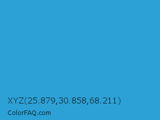 XYZ 25.879,30.858,68.211 Color is a normal blue color and the nearest color is Curious Blue #2596d1. Hex code #2ba1d6 and RGB value is rgb(43,161,214). In RGB color space, this color is composed of 17% red, 63% green, 84% blue, In CMYK color space, this color is composed of 80% cyan, 25% magenta, 0% yellow , 16% black , In HSL color space, this color has a hue angle of 199° , 68% saturation and 50% lightness.