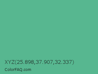 XYZ 25.898,37.907,32.337 Color is a normal green color and the nearest color is Silver Tree #66b58f. Hex code #57b790 and RGB value is rgb(87,183,144). In RGB color space, this color is composed of 34% red, 72% green, 56% blue, In CMYK color space, this color is composed of 52% cyan, 0% magenta, 21% yellow , 28% black , In HSL color space, this color has a hue angle of 156° , 40% saturation and 53% lightness.