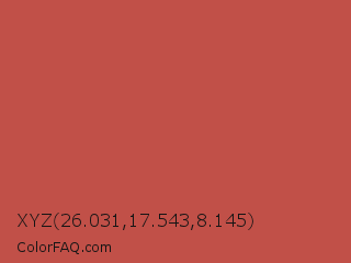 XYZ 26.031,17.543,8.145 Color is a normal red color and the nearest color is Deep Chestnut #b94e48. Hex code #c15048 and RGB value is rgb(193,80,72). In RGB color space, this color is composed of 76% red, 31% green, 28% blue, In CMYK color space, this color is composed of 0% cyan, 59% magenta, 63% yellow , 24% black , In HSL color space, this color has a hue angle of 4° , 49% saturation and 52% lightness.