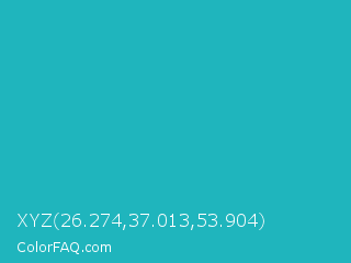 XYZ 26.274,37.013,53.904 Color is a normal cyan color and the nearest color is Java #1fc2c2. Hex code #1fb5bd and RGB value is rgb(31,181,189). In RGB color space, this color is composed of 12% red, 71% green, 74% blue, In CMYK color space, this color is composed of 84% cyan, 4% magenta, 0% yellow , 26% black , In HSL color space, this color has a hue angle of 183° , 72% saturation and 43% lightness.