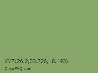 XYZ 26.2,33.726,18.493 Color is a normal green color and the nearest color is Asparagus #87a96b. Hex code #86a769 and RGB value is rgb(134,167,105). In RGB color space, this color is composed of 53% red, 65% green, 41% blue, In CMYK color space, this color is composed of 20% cyan, 0% magenta, 37% yellow , 35% black , In HSL color space, this color has a hue angle of 92° , 26% saturation and 53% lightness.