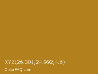 XYZ 26.301,24.992,4.6 Color is a normal orange color and the nearest color is Mandalay #ad781b. Hex code #b2801d and RGB value is rgb(178,128,29). In RGB color space, this color is composed of 70% red, 50% green, 11% blue, In CMYK color space, this color is composed of 0% cyan, 28% magenta, 84% yellow , 30% black , In HSL color space, this color has a hue angle of 40° , 72% saturation and 41% lightness.