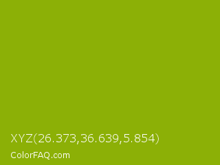 XYZ 26.373,36.639,5.854 Color is a normal lime color and the nearest color is Apple Green #8db600. Hex code #8cb006 and RGB value is rgb(140,176,6). In RGB color space, this color is composed of 55% red, 69% green, 2% blue, In CMYK color space, this color is composed of 20% cyan, 0% magenta, 97% yellow , 31% black , In HSL color space, this color has a hue angle of 73° , 93% saturation and 36% lightness.