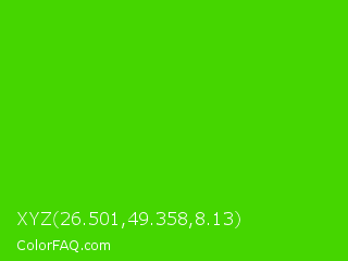 XYZ 26.501,49.358,8.13 Color is a normal green color and the nearest color is Harlequin Green #46cb18. Hex code #45d600 and RGB value is rgb(69,214,0). In RGB color space, this color is composed of 27% red, 84% green, 0% blue, In CMYK color space, this color is composed of 68% cyan, 0% magenta, 100% yellow , 16% black , In HSL color space, this color has a hue angle of 101° , 100% saturation and 42% lightness.