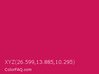 XYZ 26.599,13.885,10.295 Color is a normal rose color and the nearest color is Rose Red #c21e56. Hex code #cb1457 and RGB value is rgb(203,20,87). In RGB color space, this color is composed of 80% red, 8% green, 34% blue, In CMYK color space, this color is composed of 0% cyan, 90% magenta, 57% yellow , 20% black , In HSL color space, this color has a hue angle of 338° , 82% saturation and 44% lightness.