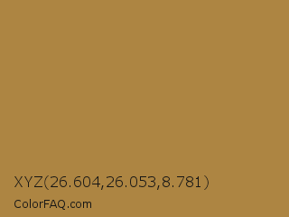 XYZ 26.604,26.053,8.781 Color is a normal orange color and the nearest color is Driftwood #af8751. Hex code #ad8542 and RGB value is rgb(173,133,66). In RGB color space, this color is composed of 68% red, 52% green, 26% blue, In CMYK color space, this color is composed of 0% cyan, 23% magenta, 62% yellow , 32% black , In HSL color space, this color has a hue angle of 38° , 45% saturation and 47% lightness.