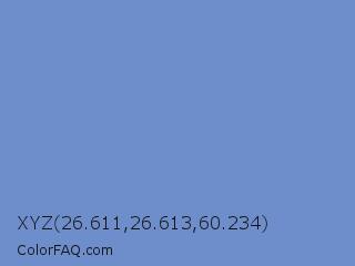 XYZ 26.611,26.613,60.234 Color is a light blue color and the nearest color is Blue Gray #6699cc. Hex code #6d8dcb and RGB value is rgb(109,141,203). In RGB color space, this color is composed of 43% red, 55% green, 80% blue, In CMYK color space, this color is composed of 46% cyan, 31% magenta, 0% yellow , 20% black , In HSL color space, this color has a hue angle of 220° , 47% saturation and 61% lightness.