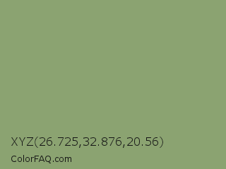 XYZ 26.725,32.876,20.56 Color is a normal green color and the nearest color is Asparagus #87a96b. Hex code #8ba371 and RGB value is rgb(139,163,113). In RGB color space, this color is composed of 55% red, 64% green, 44% blue, In CMYK color space, this color is composed of 15% cyan, 0% magenta, 31% yellow , 36% black , In HSL color space, this color has a hue angle of 89° , 21% saturation and 54% lightness.