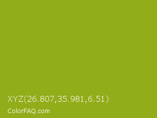 XYZ 26.807,35.981,6.51 Color is a normal lime color and the nearest color is Citron #9fa91f. Hex code #91ad1a and RGB value is rgb(145,173,26). In RGB color space, this color is composed of 57% red, 68% green, 10% blue, In CMYK color space, this color is composed of 16% cyan, 0% magenta, 85% yellow , 32% black , In HSL color space, this color has a hue angle of 71° , 74% saturation and 39% lightness.