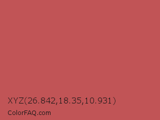 XYZ 26.842,18.35,10.931 Color is a normal red color and the nearest color is Fuzzy Wuzzy Brown #c45655. Hex code #c15456 and RGB value is rgb(193,84,86). In RGB color space, this color is composed of 76% red, 33% green, 34% blue, In CMYK color space, this color is composed of 0% cyan, 56% magenta, 55% yellow , 24% black , In HSL color space, this color has a hue angle of 359° , 47% saturation and 54% lightness.