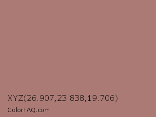 XYZ 26.907,23.838,19.706 Color is a normal red color and the nearest color is Burnished Brown #a17a74. Hex code #ab7a74 and RGB value is rgb(171,122,116). In RGB color space, this color is composed of 67% red, 48% green, 45% blue, In CMYK color space, this color is composed of 0% cyan, 29% magenta, 32% yellow , 33% black , In HSL color space, this color has a hue angle of 7° , 25% saturation and 56% lightness.