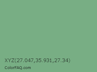 XYZ 27.047,35.931,27.34 Color is a normal green color and the nearest color is Bay Leaf #7da98d. Hex code #78ae84 and RGB value is rgb(120,174,132). In RGB color space, this color is composed of 47% red, 68% green, 52% blue, In CMYK color space, this color is composed of 31% cyan, 0% magenta, 24% yellow , 32% black , In HSL color space, this color has a hue angle of 133° , 25% saturation and 58% lightness.