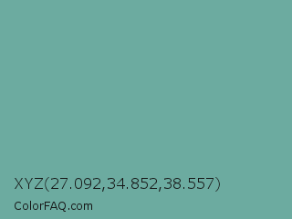 XYZ 27.092,34.852,38.557 Color is a normal cyan color and the nearest color is Green Sheen #6eaea1. Hex code #6caba0 and RGB value is rgb(108,171,160). In RGB color space, this color is composed of 42% red, 67% green, 63% blue, In CMYK color space, this color is composed of 37% cyan, 0% magenta, 6% yellow , 33% black , In HSL color space, this color has a hue angle of 170° , 27% saturation and 55% lightness.