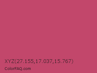 XYZ 27.155,17.037,15.767 Color is a normal rose color and the nearest color is Fuchsia Rose #c74375. Hex code #c2476b and RGB value is rgb(194,71,107). In RGB color space, this color is composed of 76% red, 28% green, 42% blue, In CMYK color space, this color is composed of 0% cyan, 63% magenta, 45% yellow , 24% black , In HSL color space, this color has a hue angle of 342° , 50% saturation and 52% lightness.