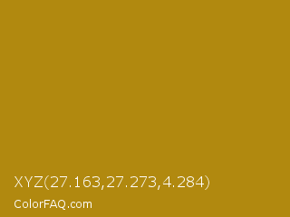 XYZ 27.163,27.273,4.284 Color is a normal orange color and the nearest color is Dark Goldenrod #b8860b. Hex code #b1890f and RGB value is rgb(177,137,15). In RGB color space, this color is composed of 69% red, 54% green, 6% blue, In CMYK color space, this color is composed of 0% cyan, 23% magenta, 92% yellow , 31% black , In HSL color space, this color has a hue angle of 45° , 84% saturation and 38% lightness.