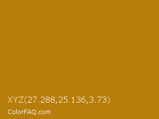 XYZ 27.288,25.136,3.73 Color is a normal orange color and the nearest color is Hot Toddy #b38007. Hex code #b87e0b and RGB value is rgb(184,126,11). In RGB color space, this color is composed of 72% red, 49% green, 4% blue, In CMYK color space, this color is composed of 0% cyan, 32% magenta, 94% yellow , 28% black , In HSL color space, this color has a hue angle of 40° , 89% saturation and 38% lightness.
